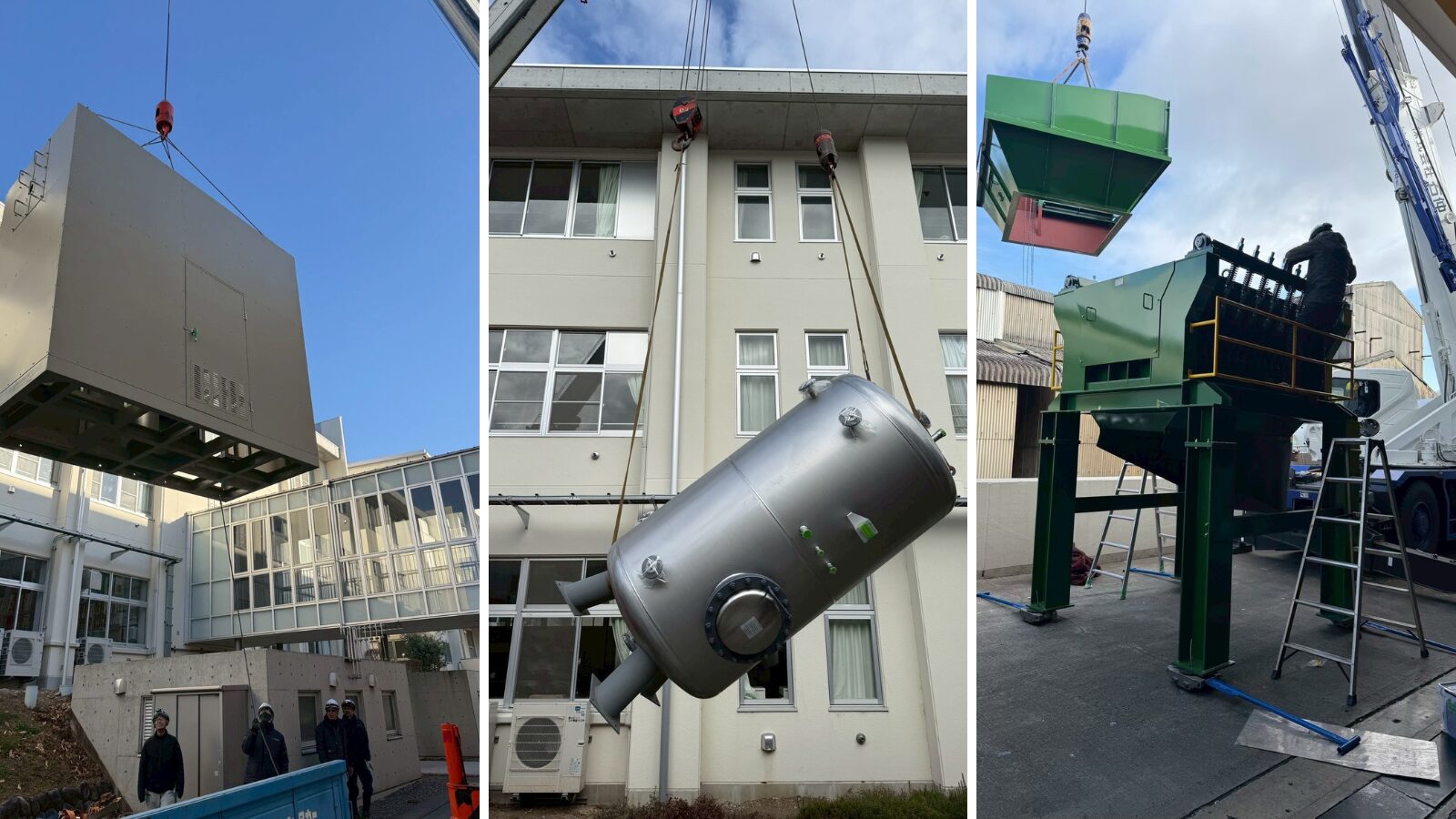 重量屋さんの仕事がなければ工場も発電所も病院も「動く設備を設置できない」ので 社会インフラの裏方を支える、縁の下の力持ちなのです。